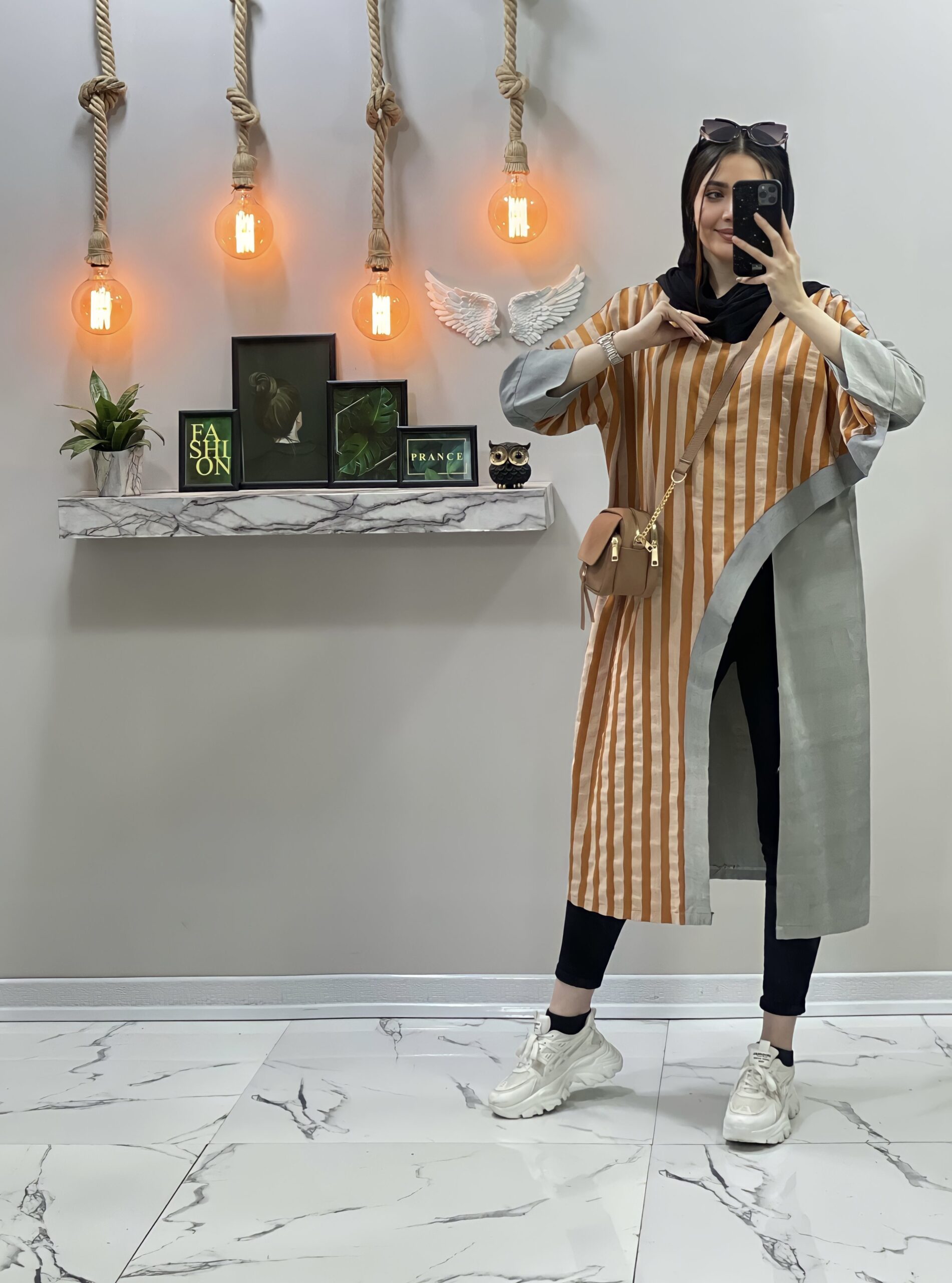 مانتو پانچ راه راه کد 56